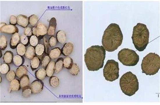 圖3:川赤芍(左)不管在外觀、氣味仍是含量上,都顯著弱于粉赤芍(右)。